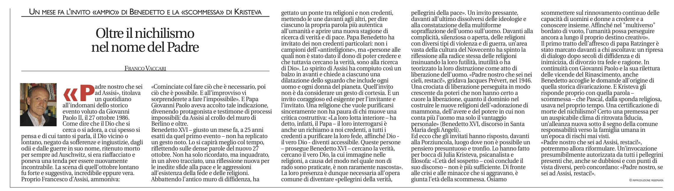 Avvenire du 27 novembre 2011, cliquer pour agrandir